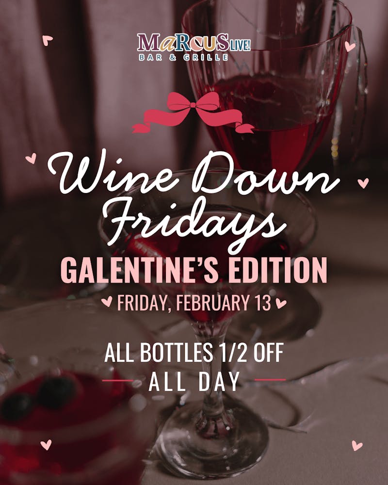 Sip, dance, and ease into the weekend with half off wine bottles every Friday at Marcus Live!