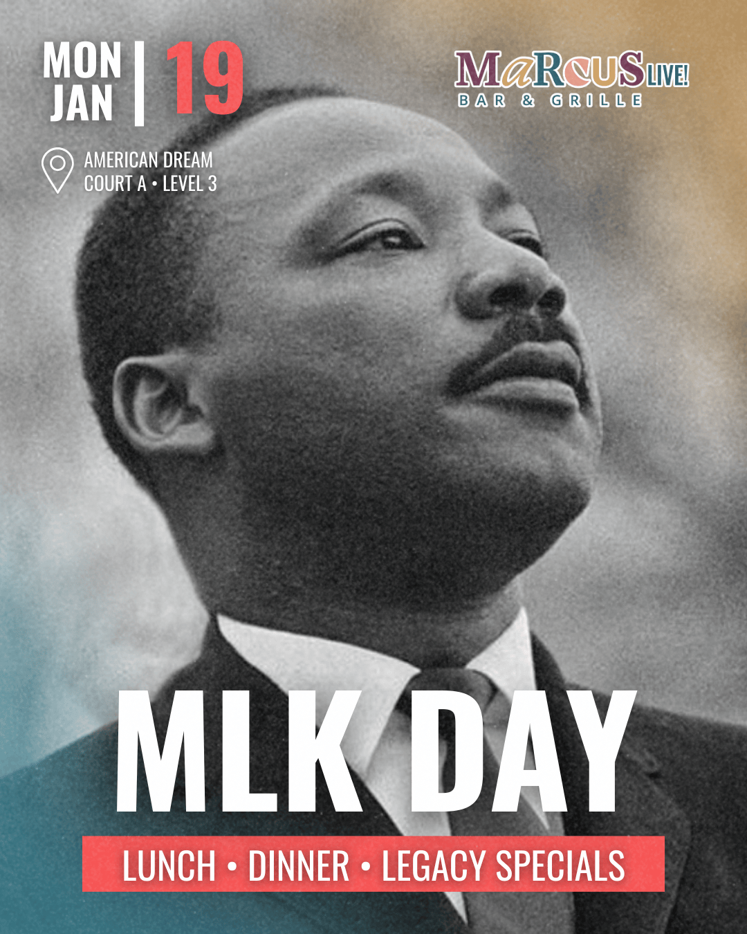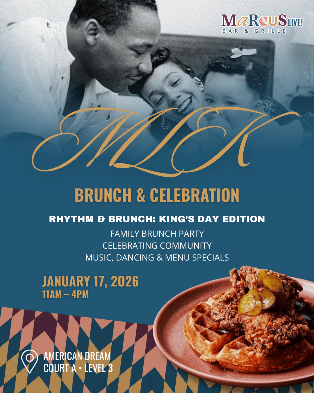 Join us for a lively MLK Weekend brunch party at Marcus LIVE! Enjoy a seat at the table with us, featuring brunch favorites, specialty dishes and drinks that pay homage to the holiday. Local DJs playing great music and setting good vibes at 1pm.