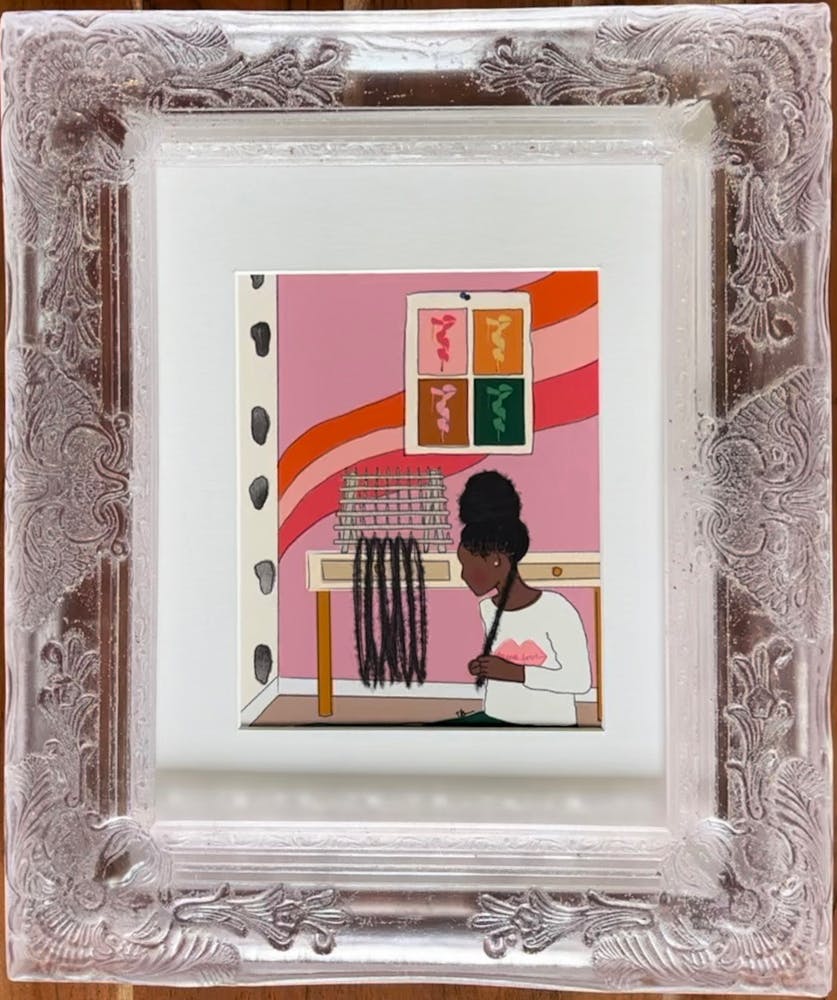 Tasha Branham is a contemporary artist and storyteller based in New Jersey. She draws inspiration from faith and creation, weaving the stories of women of color on their journey to discover confidence, hope, and purpose through her art. Her works, adorned with florals, patterns, textures, and whimsical elements, reflect her unique artistic vision.